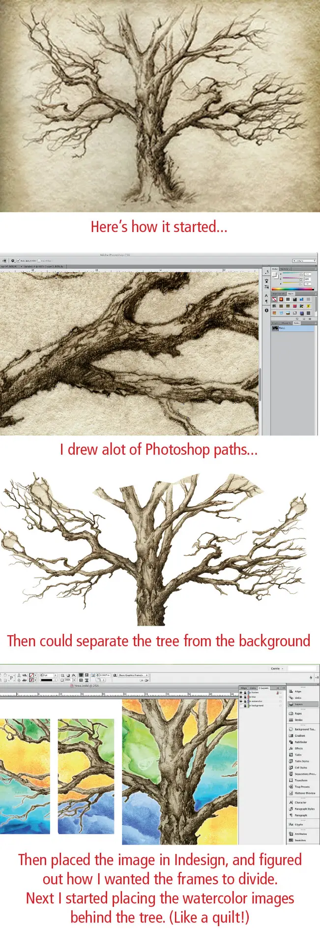 I was really happy with the look of the tree images in our bedroom, and decided to continue that idea. I started scoping my favorite stock sites for some hand-drawn food images, and found these. I love the citrus one! I did some work in Illustrator and Photoshop to formulate the paths, and layered watercolor images in the background.