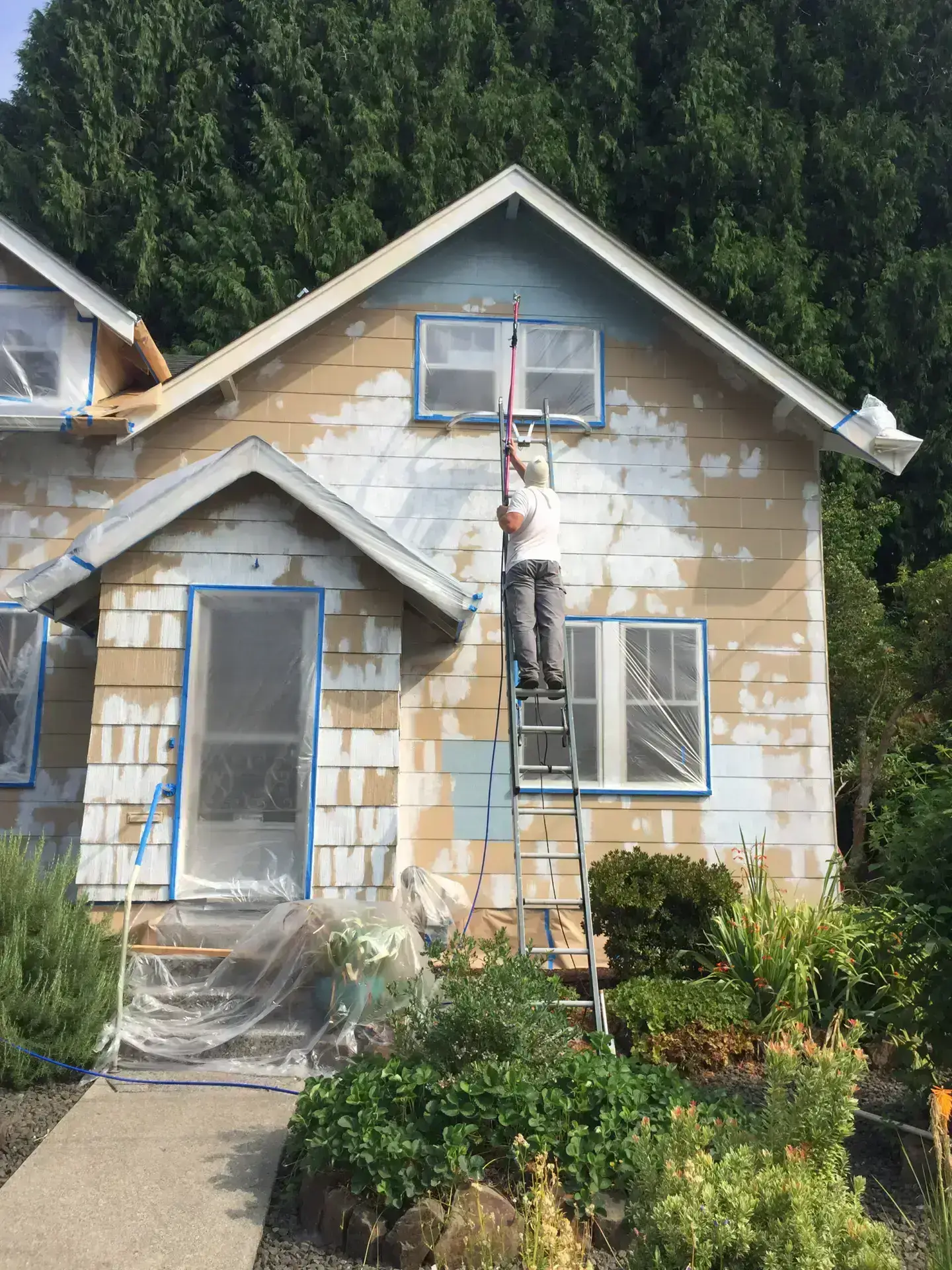 Start with the scraping and pressure washing.