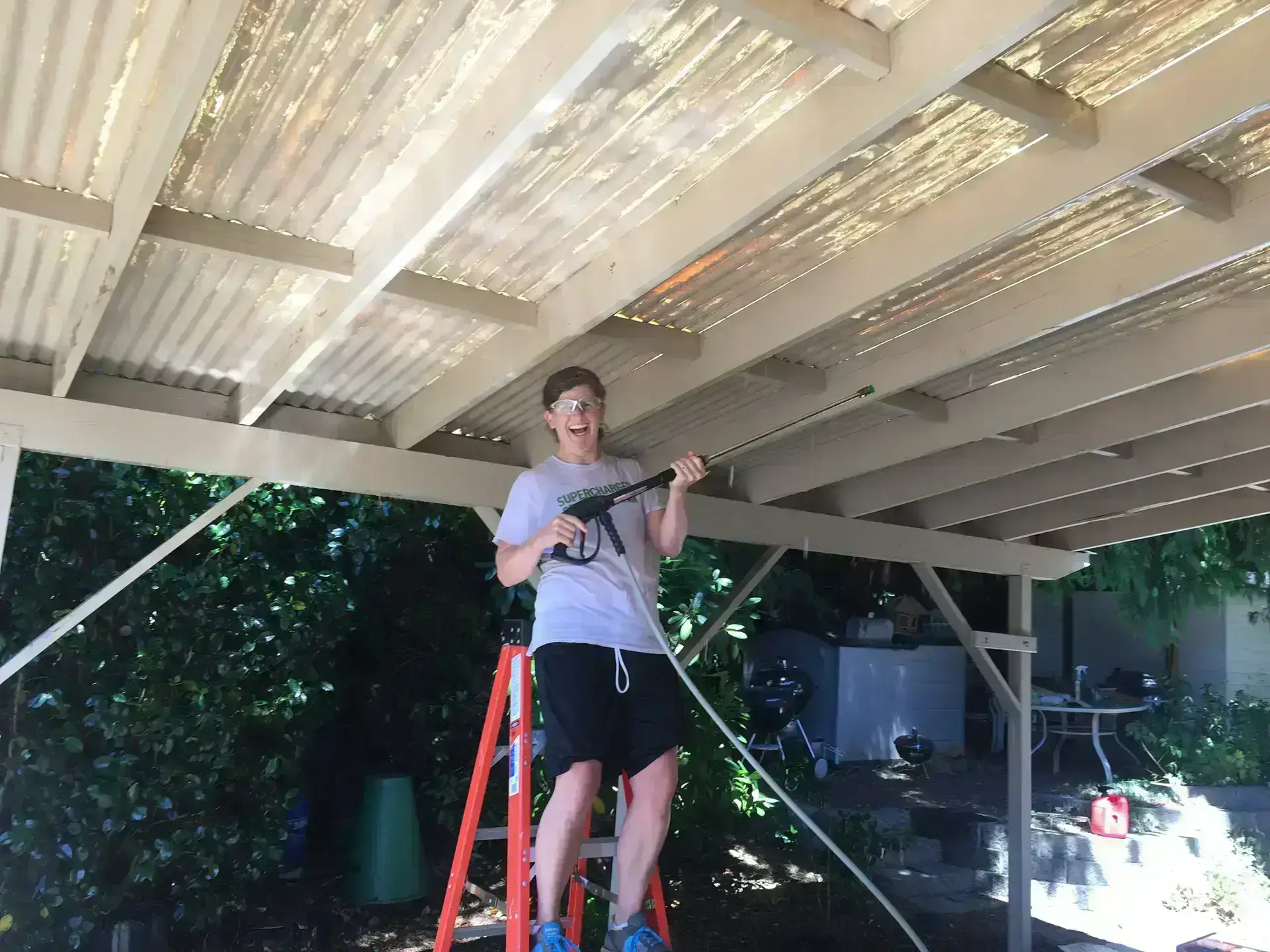 Having fun with the pressure washer.