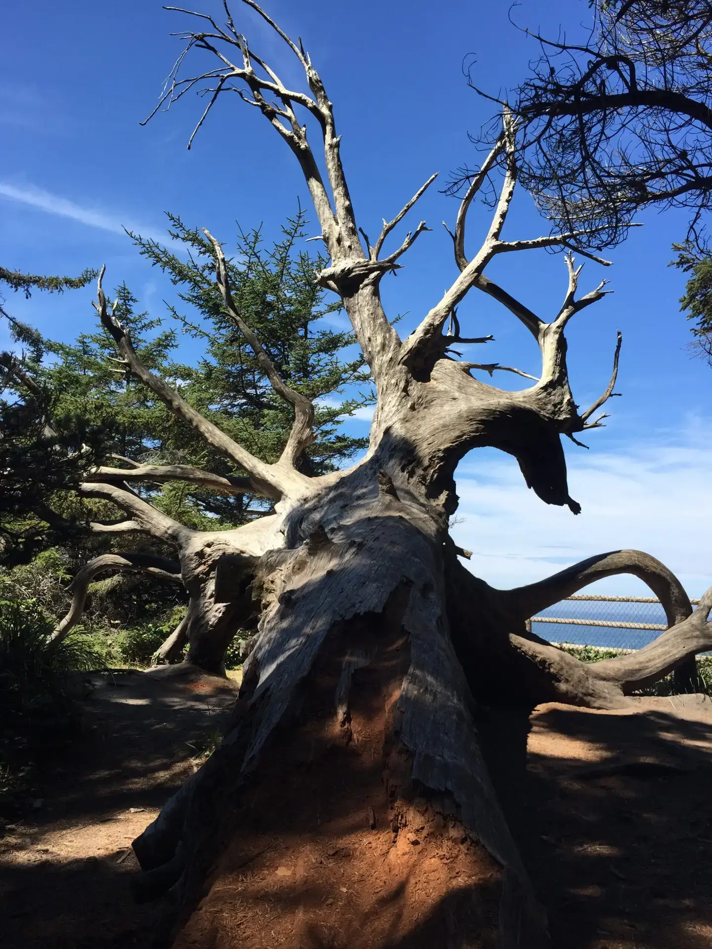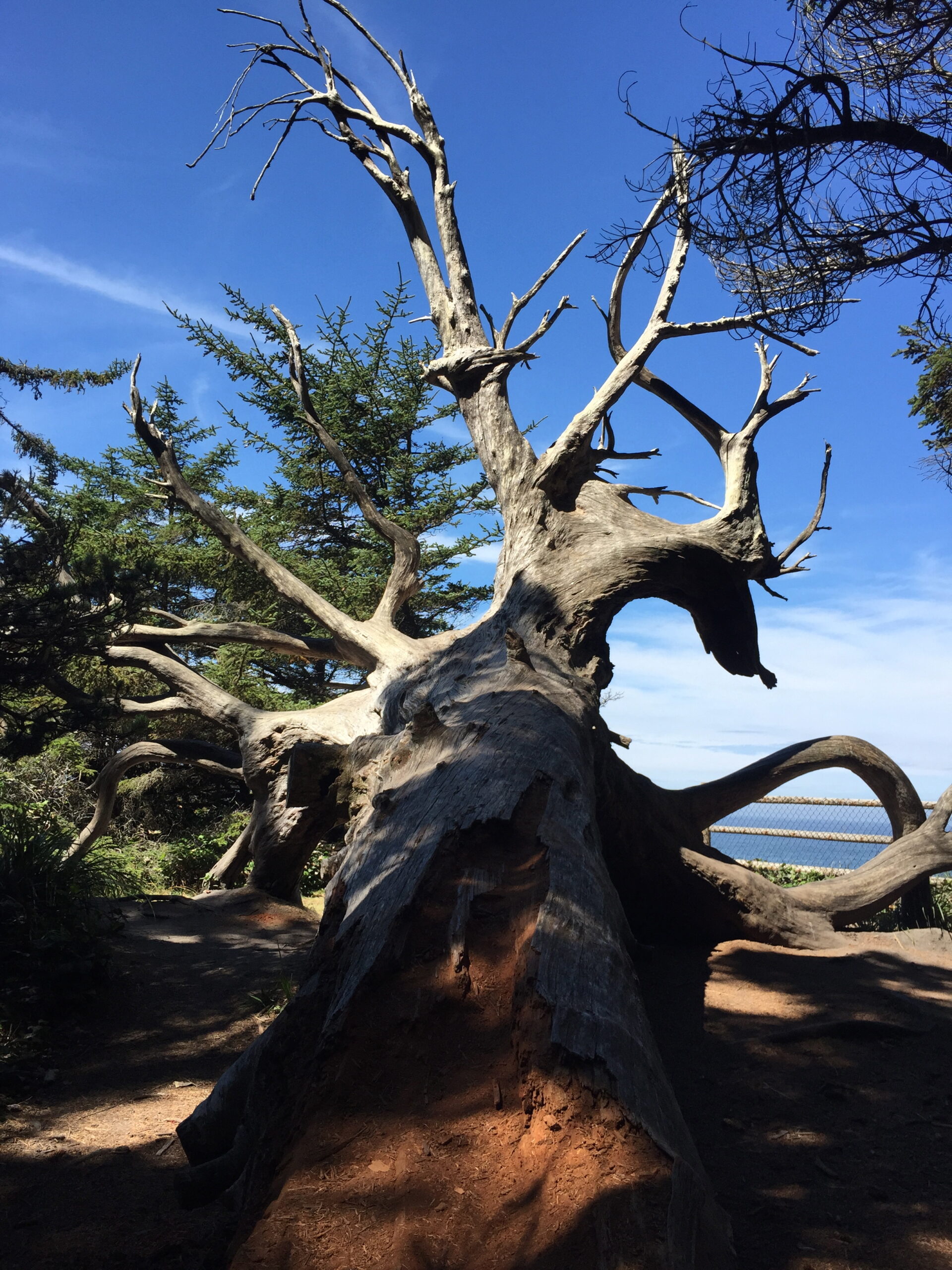 Jamie and I still wanted to walk some more, and it was only 10AM, so we headed out on the Fern trail, also accessible from the campground. The camp host had told us about it when we were figuring out camp site, and said it was a decommissioned section of Hwy 101. You could follow it all the way to Port Orford. So we climbed a small hill to get on it, and it was kinda weird. There’s old pavement that’s being taken back by nature, so we laughed about how it felt like we were in the Walking Dead. The world has ended, so maintenance no longer happens, ha!