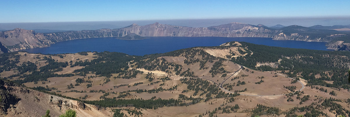 We headed back down Hwy 58 to hook up with 97, then to 138, then hit the north entrance of the park. But on the way past Chemult, we saw a warning light saying the North Entrance was closed due to a forest fire. So we had to stay on 97 to 422, then N on 62. A little longer drive, but better than a fire! Turns out, the fire was started by lightning. It’s been a dry year this year, and there are fires all over.
