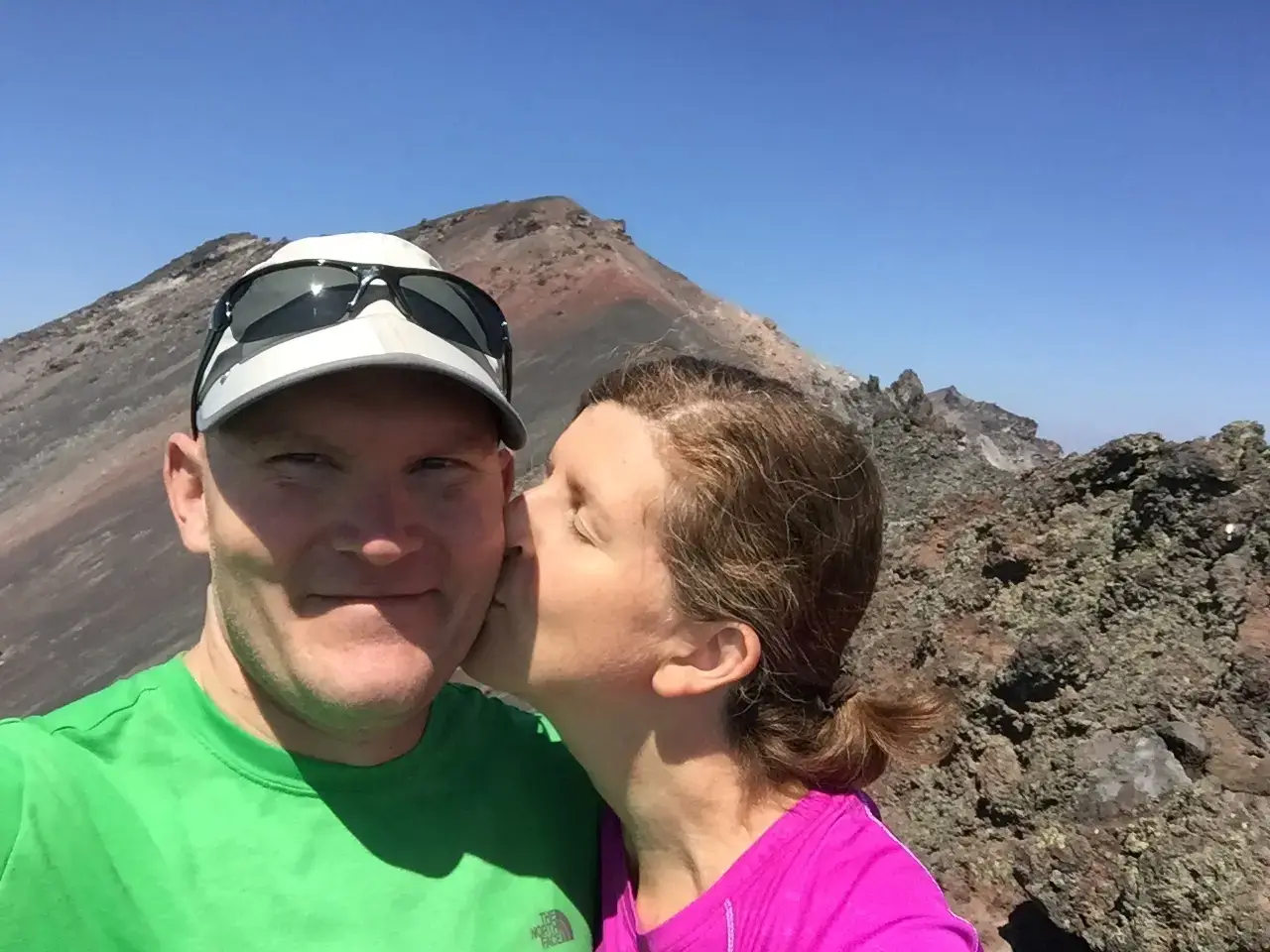 I’m kissing my bicep to prove how tough we are, trying to reach the summit of Diamond Peak.