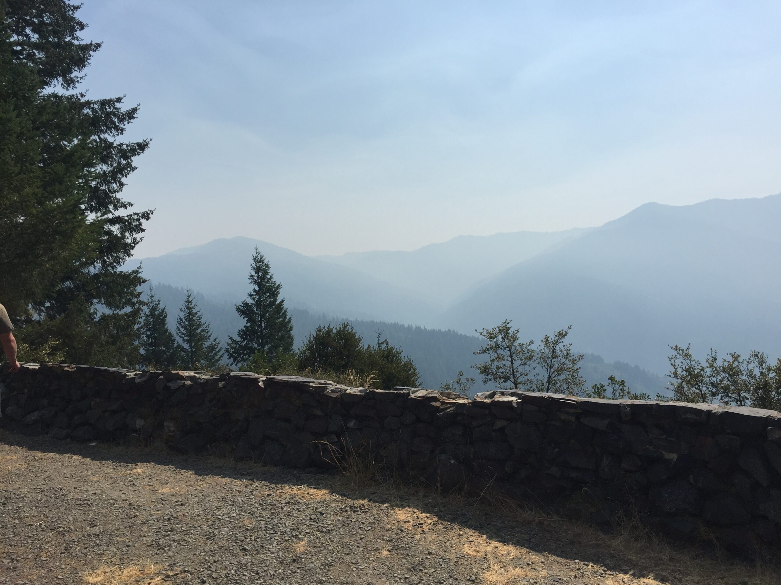 We took a little walk, then set up camp and settled in to read. We started getting attacked by mosquitoes, and no amount of bug spray was working. We couldn’t have a fire, so we just sat in the truck until bedtime. Luckily, we made it through the night without getting sucked into our own version of the Blair Witch Project, and woke up the next morning. Because of the smoke, and because we couldn’t find our trail, we decided to head back up 199 to Hwy 23 and shoot for Agness and the Copper Canyon and Illinois River trail.