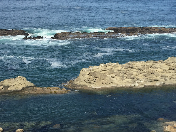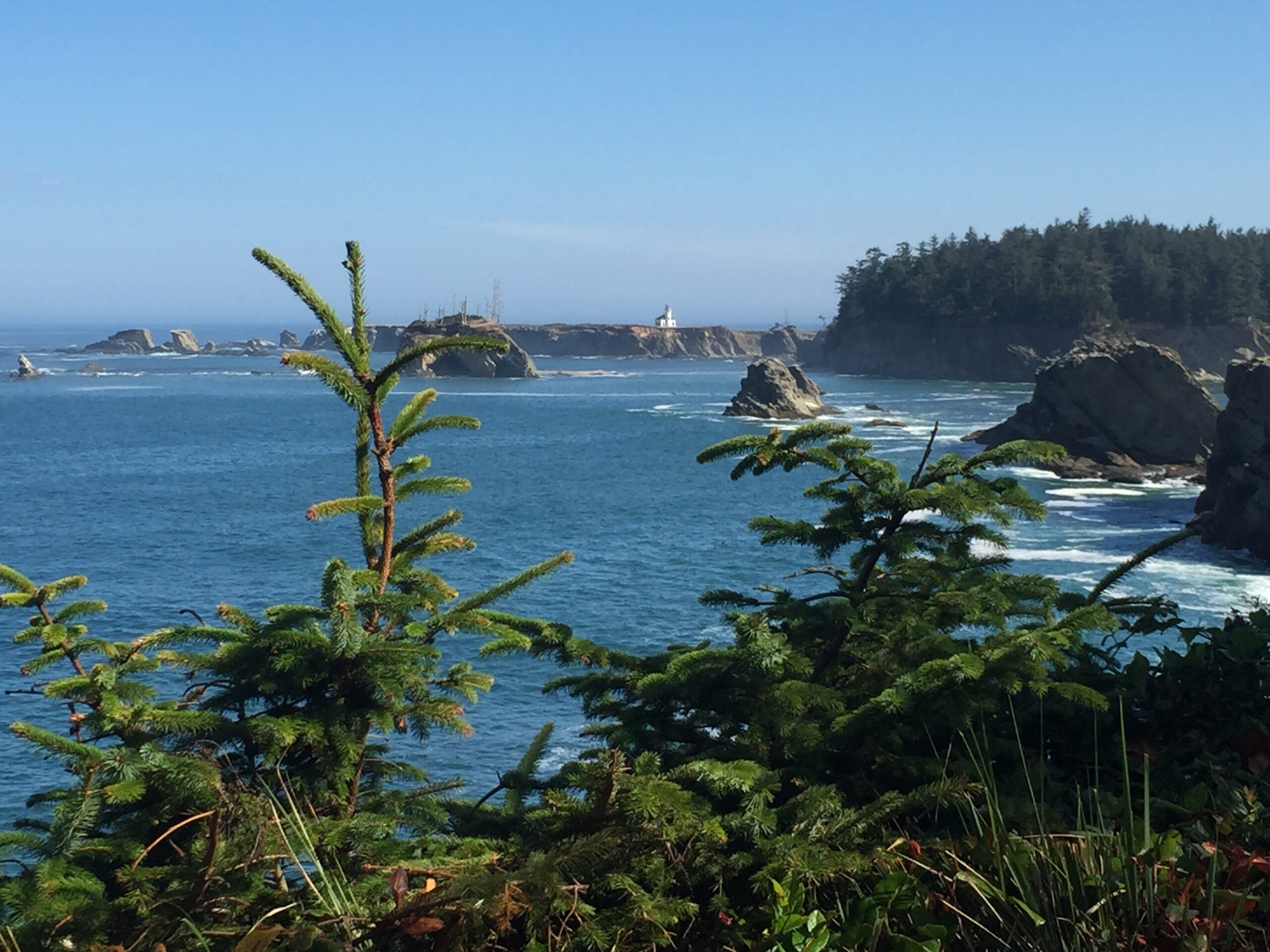 We got up this morning and had pancakes topped with peanut butter and syrup. Mmm. Then went down the hill, parked at the Sunset Bay Park, and hit the Oregon Coast trail again. We hiked the Sunset Bay to Camp Arago, which we have conflicting info, but might be about 8-9 miles. It was a beautiful walk. At Simpson Cove we got to see all the seals, and heard all their barking. We ventured to various beaches, and looked in the tide pools. On the way back, we even got to see some whales swimming and spouting in the distance. A lovely day, and a nice end to our time. Tomorrow we head to Florence to meet up with Pam, Paul and Mary Beth. It’ll be fun.
