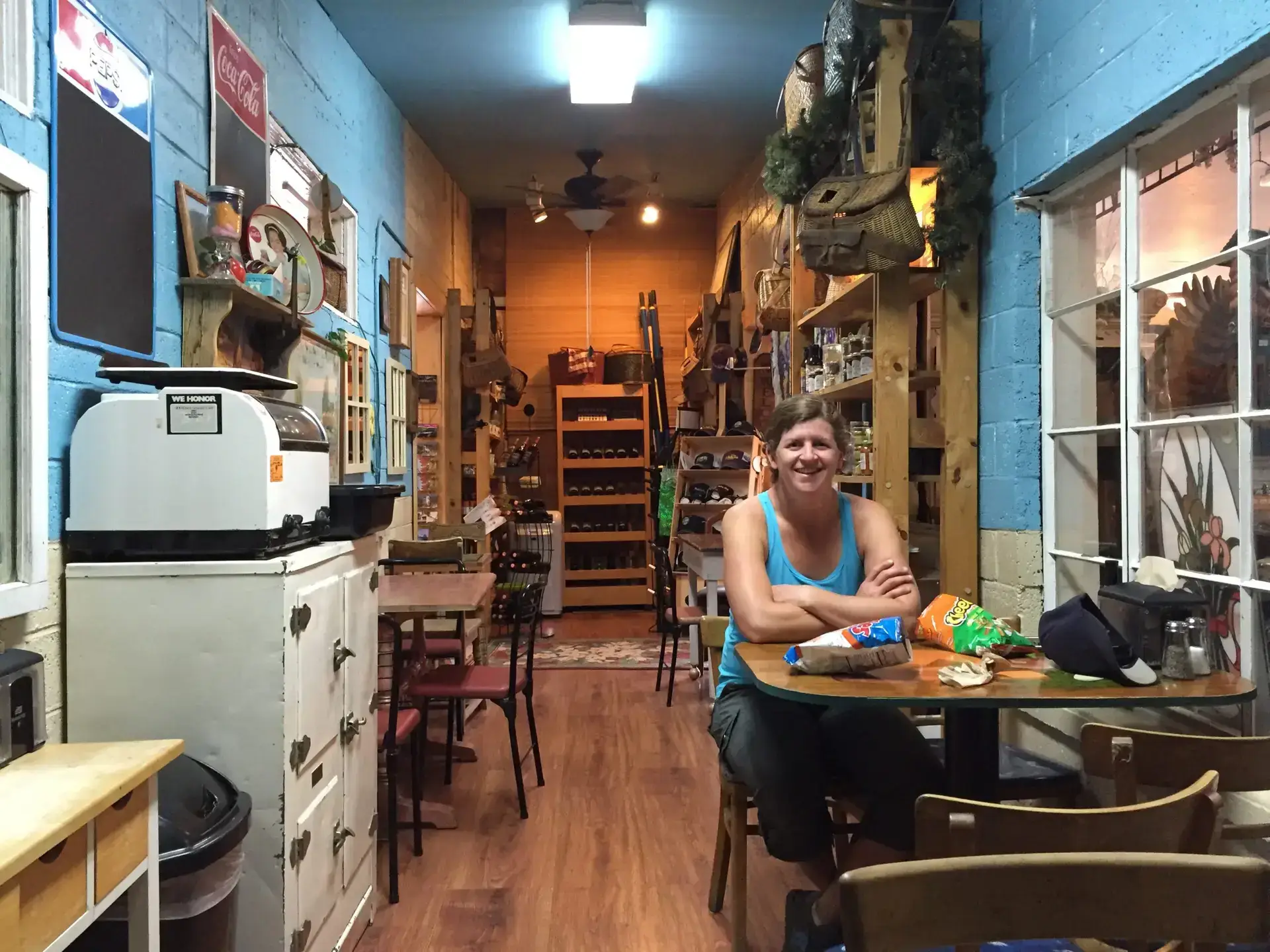 We left Indigo Springs on Friday and went to Oakville for supplies and a burger. Jamie told me today that the men’s room at the Wagon Wheel Café (where we also stopped with Chad on the way down to the Sierras last year) had a sign that said: