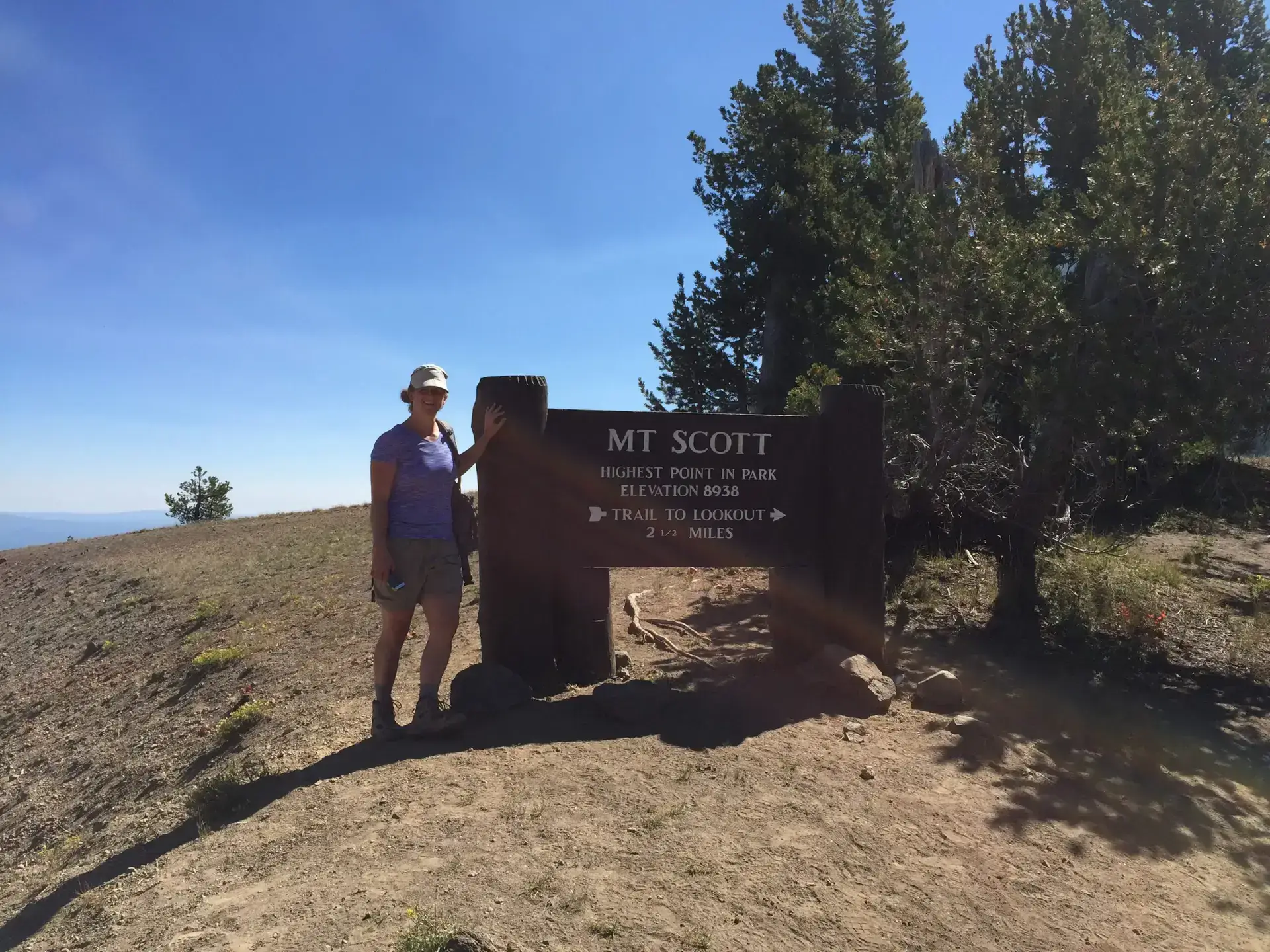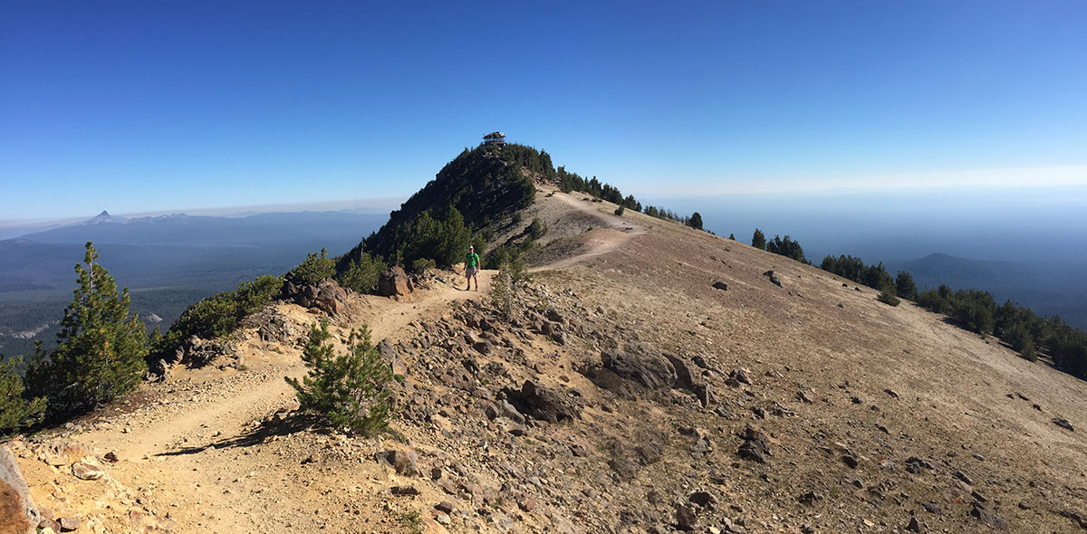 Today we hiked Mt. Scott – the highest peak in the Crater Lake Wilderness. It said it was strenuous but at only 5 miles round-trip, we thought we’d give it a shot. I don’t know why it was rated strenuous though, as we didn’t think it was that tough. The trail was nice, no skree fields to scamper through, and we made it to the top in 1 hour and 15 minutes. Beautiful view, and you can really see the smoke from the fire to the north.