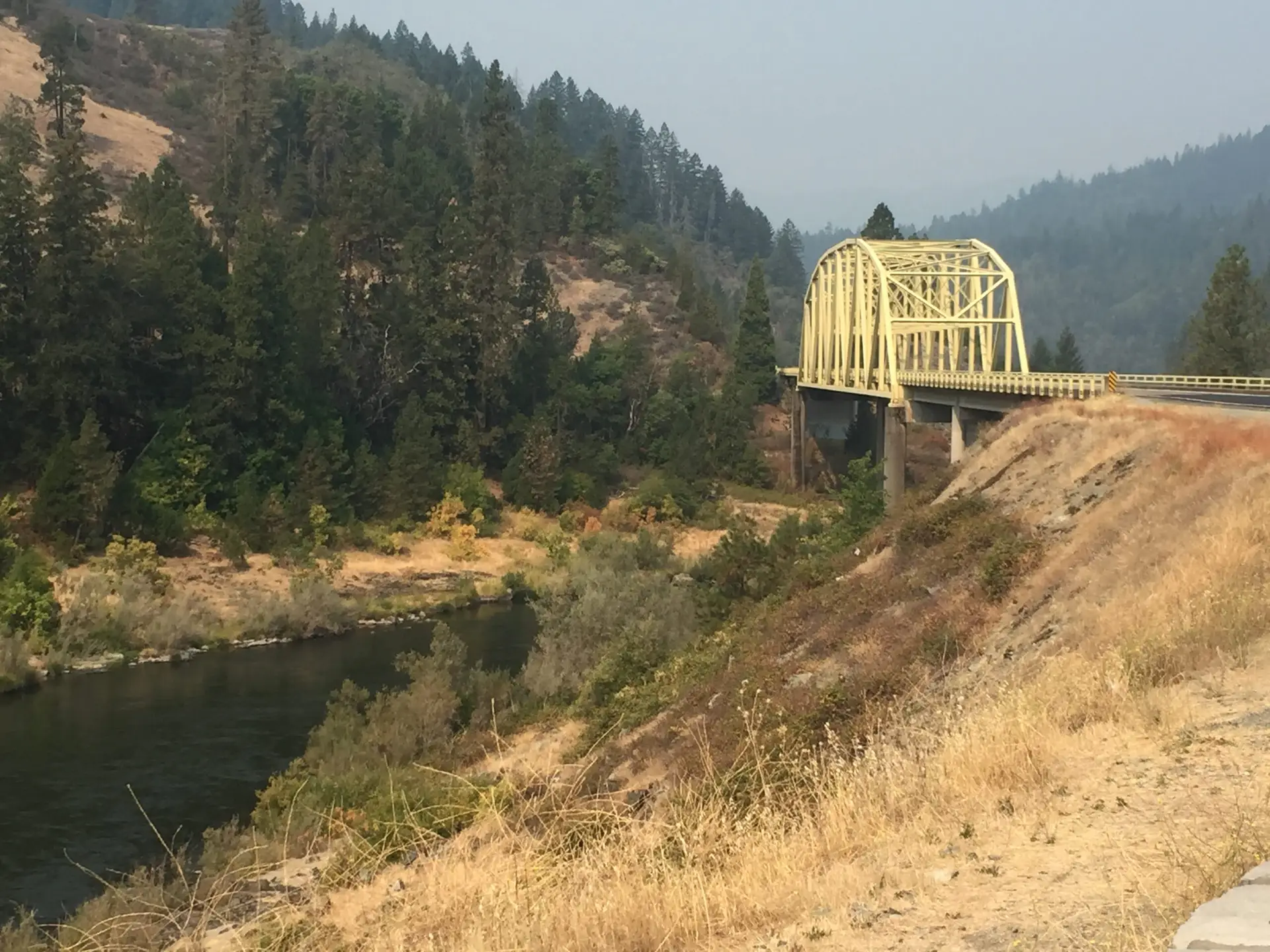 As I mentioned before, the North Entrance of Crater Lake was closed due to fire. I didn’t know there were other fires happening, but as we headed south on 62, and noticed the smoke in the air getting thicker, we realized there must be more areas ablaze. We made it to the Butte Falls turn-off, but the air was so thick we decided to continue to Grants Pass and make our way down 199 to Tannen Lake in the Red Bluffs Wilderness. We saw a laundromat in Shady Cove, so we stopped to do the wash. The owner was there, so I asked him if there were any public showers we could use. He told us to head to Rough Elk campground and ask for Betty. While the clothes were in the wash, we went to the Lunch Box deli, and had a fabulous lunch. Then went back to put the clothes in the dryer, and went looking for Betty and a shower.