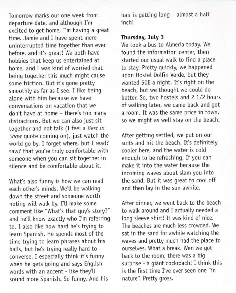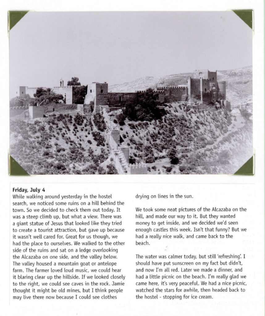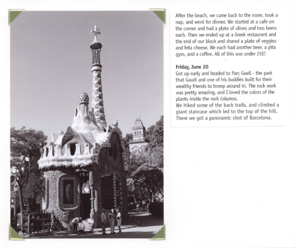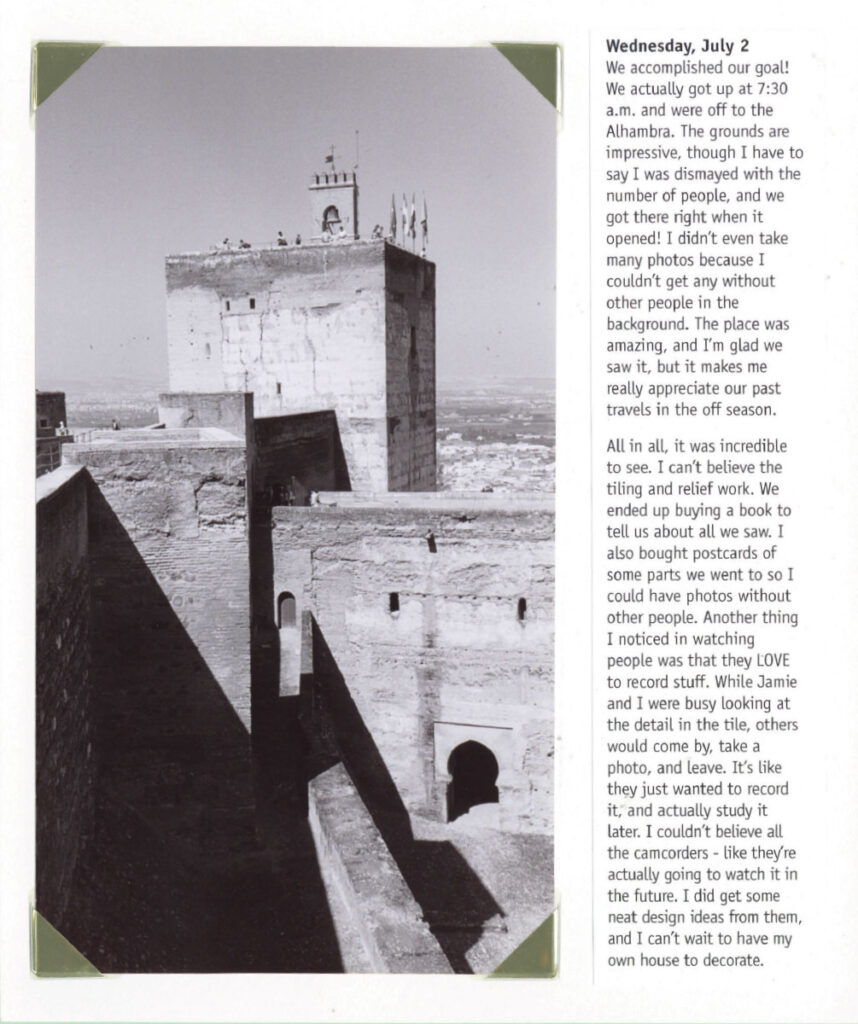 I got the photos developed, typed up our journal, and created a scrapbook. These are scans of those printed pages.