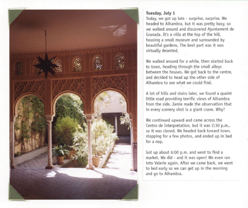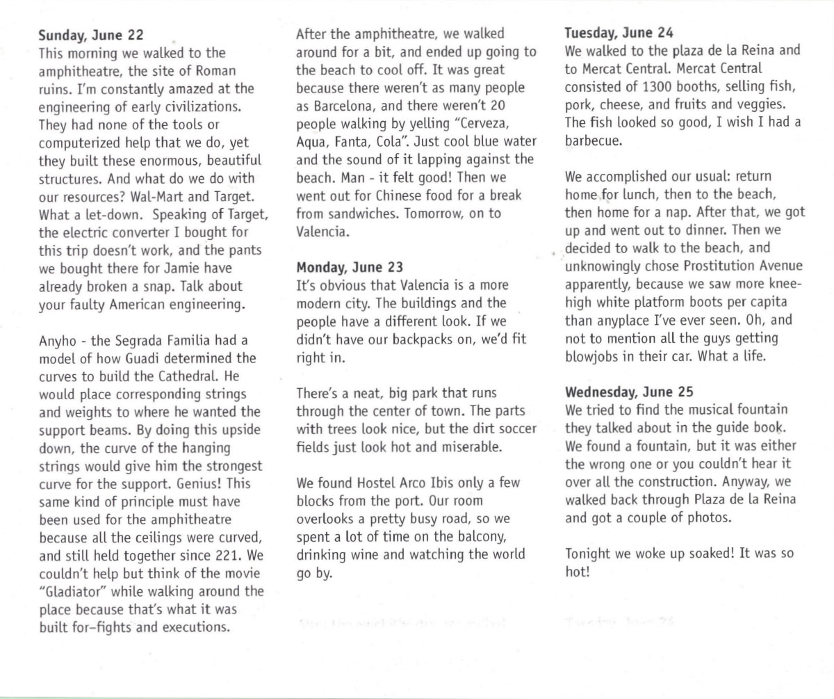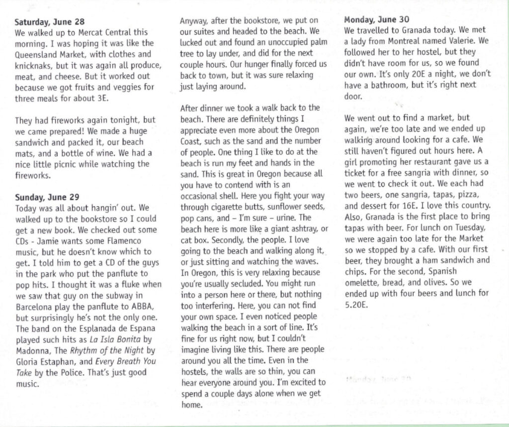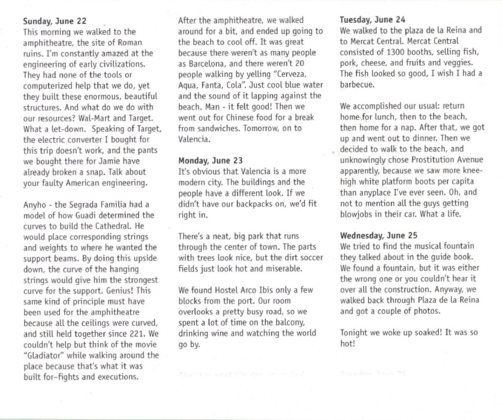 I got the photos developed, typed up our journal, and created a scrapbook. These are scans of those printed pages.