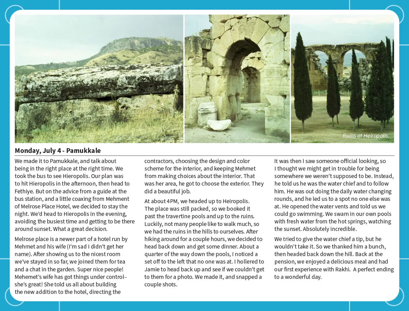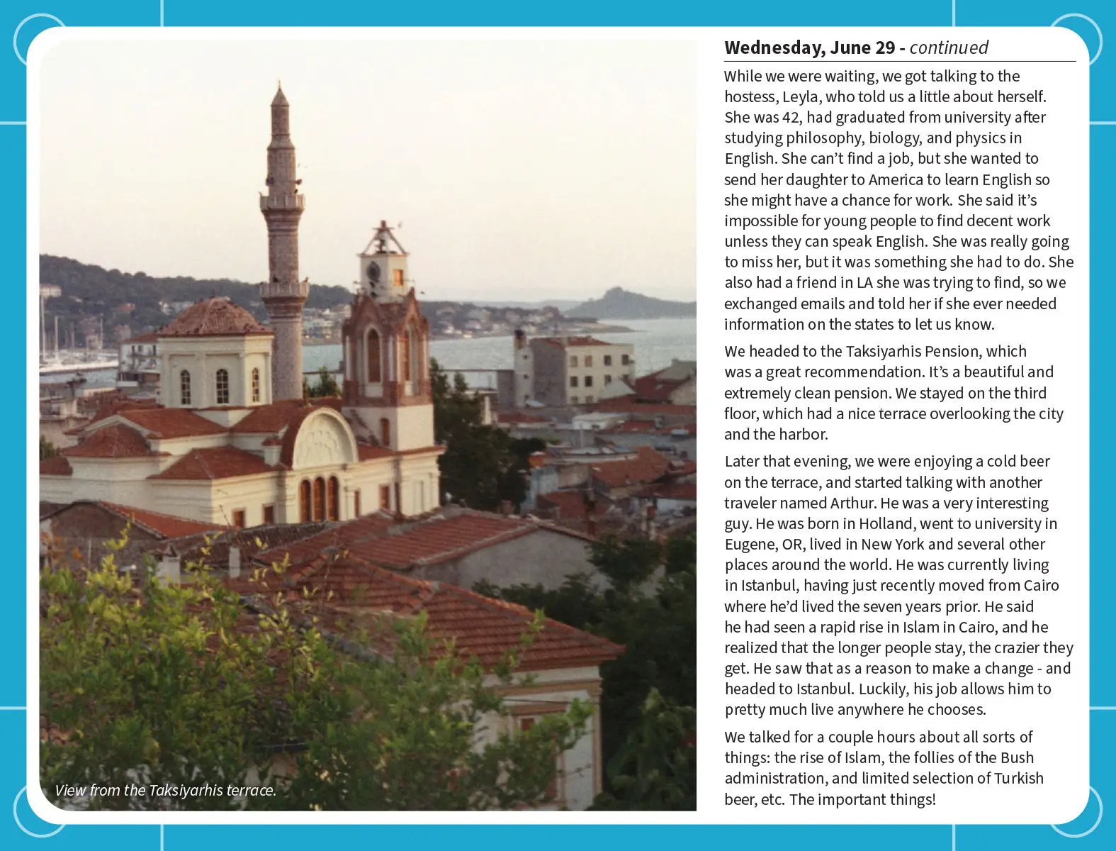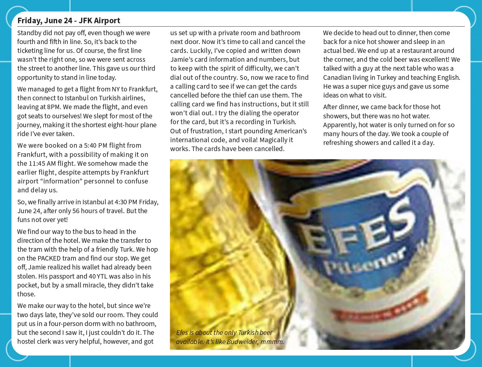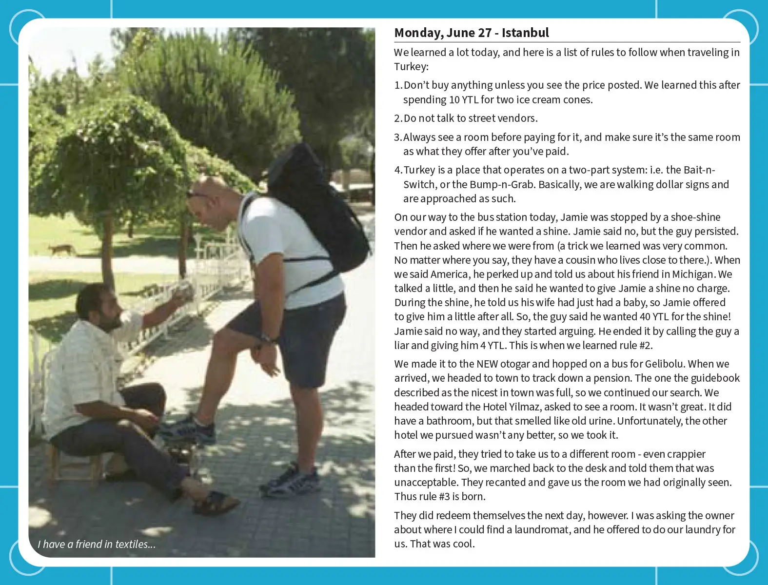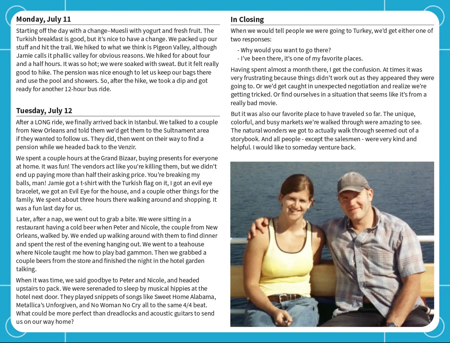 We had our backpacks, a Lonely Planet guidebook, and a camera with a couple of rolls of film.