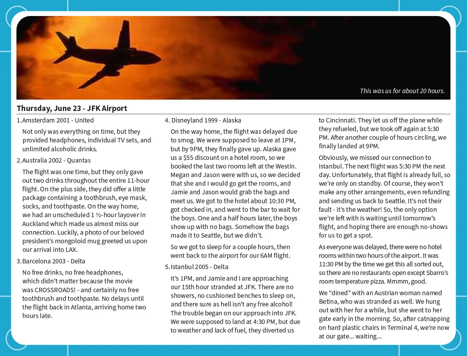 *Please note: This was in the days before cell phones and Google Maps.