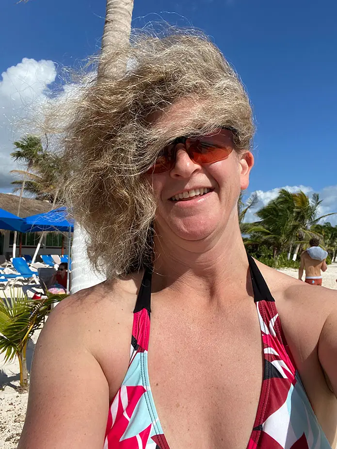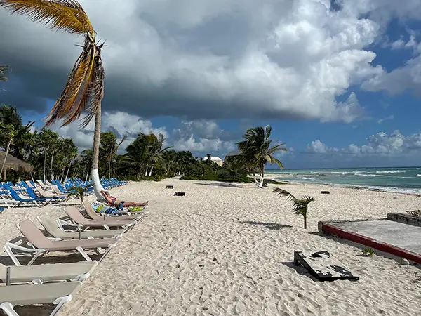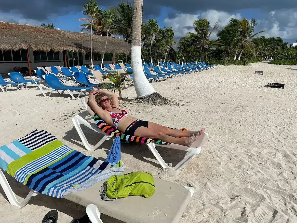 We planned on boarding the ferry to Cozumel today, as we had to check it out based on rave reviews from my Aunt and Uncle. We started looking at ferry times, and where to park, and parking costs, and when to come back so we could get the Covid test. We decided after all that discussion that just walking down the street to the beach and renting chairs and an umbrella sounded more relaxing. Besides, we’ll be traveling all day tomorrow. Looking back, we should have left Tululm early and done the ferry trip yesterday. Live and learn.