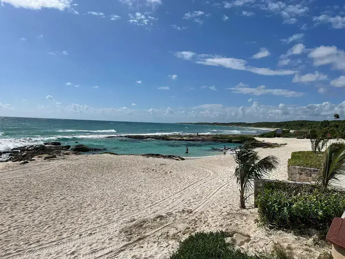 We were back at the car about 10:30AM, and headed up to Caleta Tankha, a beach club we happened upon yesterday. It was $300 pesos per person, but after what we saw yesterday in Tulu, totally worth it! What we didn’t realize was the $300 included beach recliners and an umbrella. For the next five hours we just moved from the chairs to the ocean to play in the waves and back. At about 1PM we ordered tacos and margarita. On our way out, we stopped by the two cenotes up from the beach to check them out. Once you could swim in, but it was too crowded. Back to the car and hotel we went.
