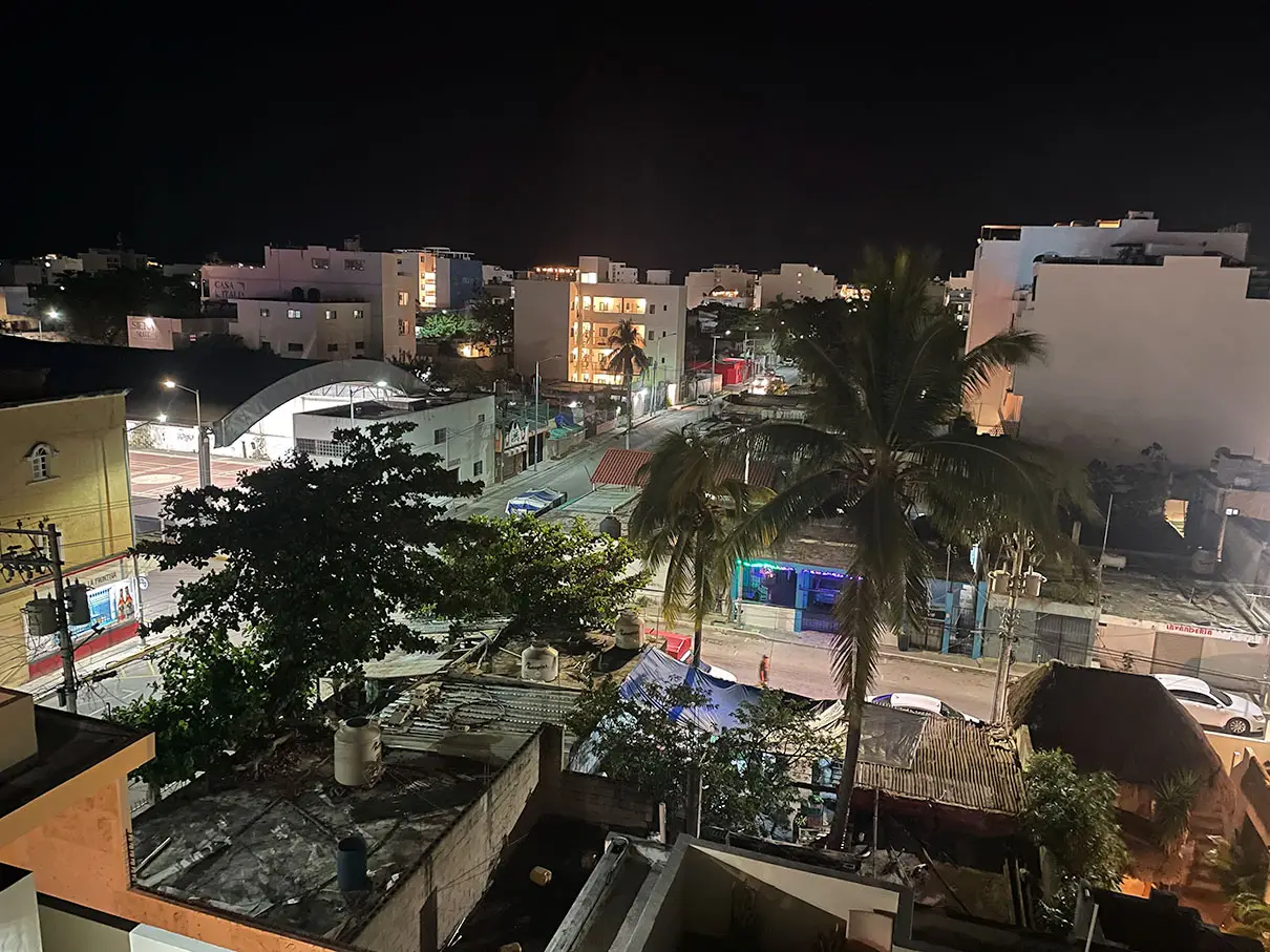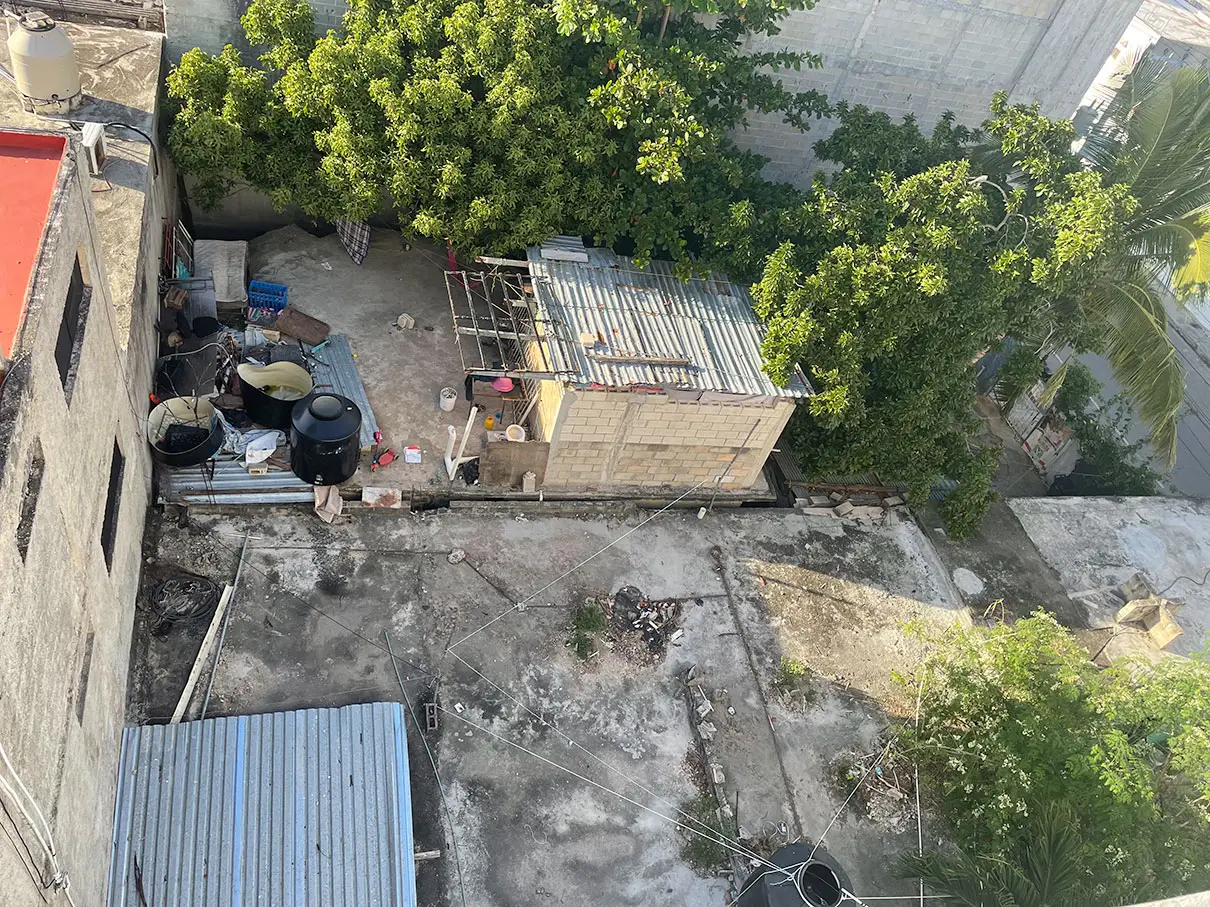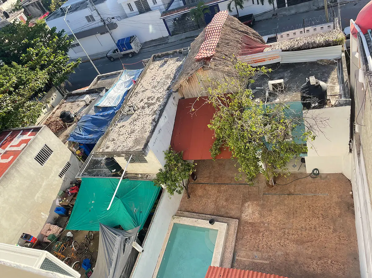 We check in to El Mexicano estudios equipados about 3PM, and with the help of cell phone translation app, we get the codes to get into the room, the front gate, and the wifi. We get settled in the room, and there are two bath towels! Then we got online to figure out Covid testing tomorrow in preparation for the trip back home on Thursday. I found a place five minutes away that’ll do it for $350 pesos. The rest of the evening was spent on the lovely top floor deck reading and drinking in the shade.