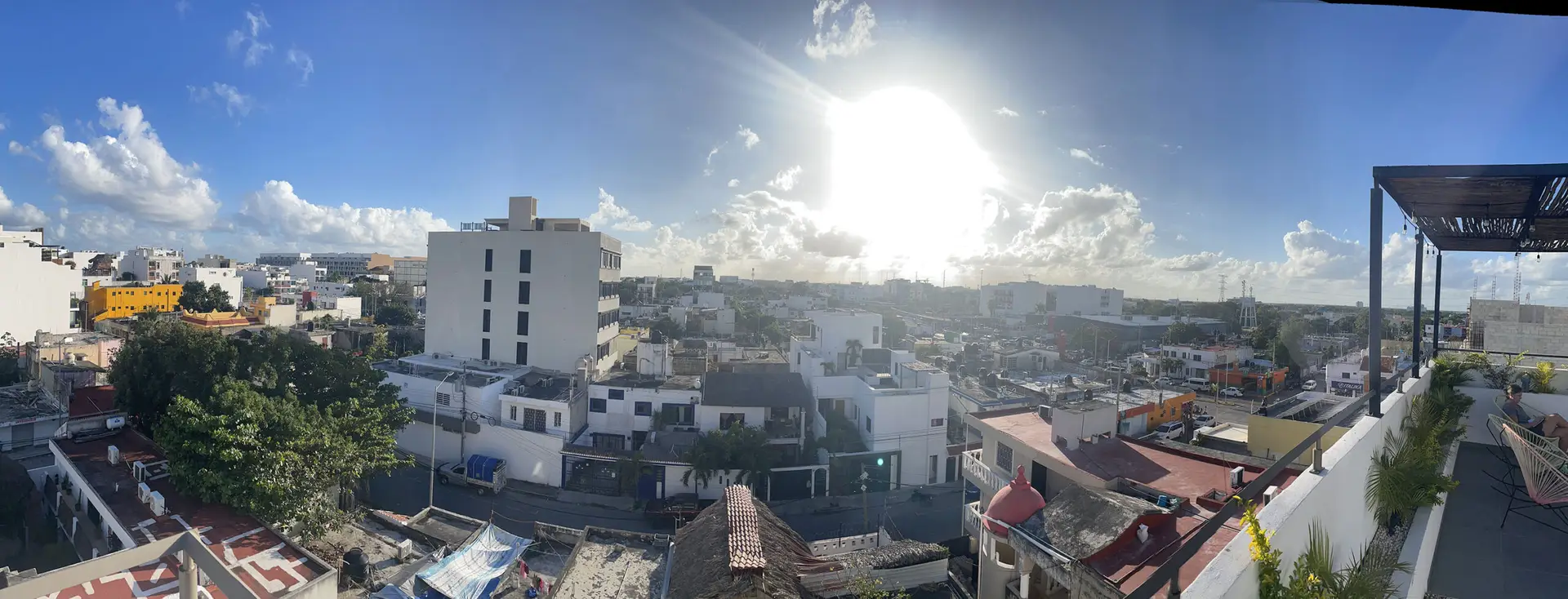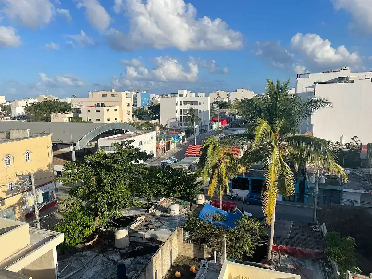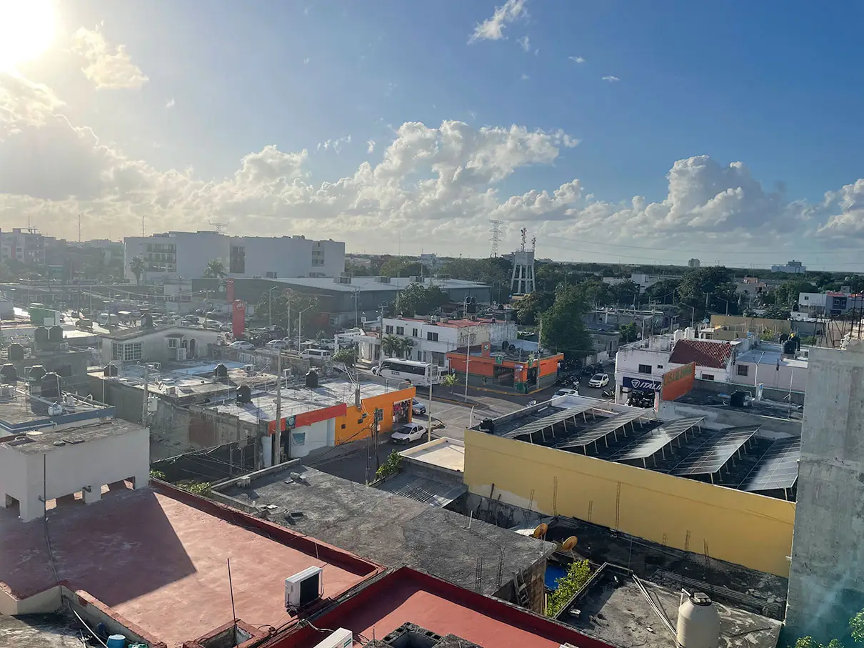 We check in to El Mexicano estudios equipados about 3PM, and with the help of cell phone translation app, we get the codes to get into the room, the front gate, and the wifi. We get settled in the room, and there are two bath towels! Then we got online to figure out Covid testing tomorrow in preparation for the trip back home on Thursday. I found a place five minutes away that’ll do it for $350 pesos. The rest of the evening was spent on the lovely top floor deck reading and drinking in the shade.